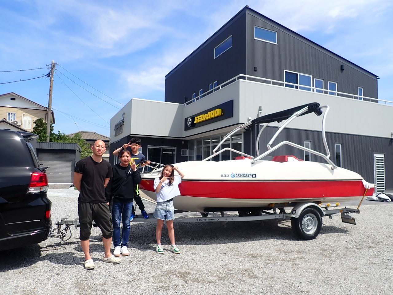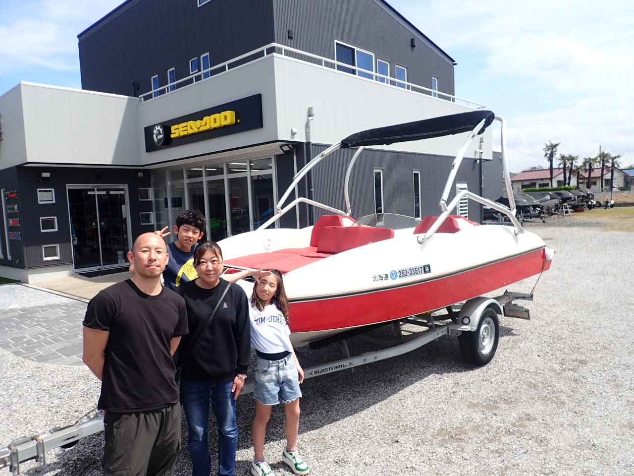 | コメント | ウェーブボートご購入ありがとうございます!なんと北海道からのご購入です!本当にありがとうございます。家族皆さまで旅行がてら引き取りに来てくださいました(^^)お疲れ様でした!家族でぜひ楽しんでください♪大事に乗ってあげてください(^^)/ |